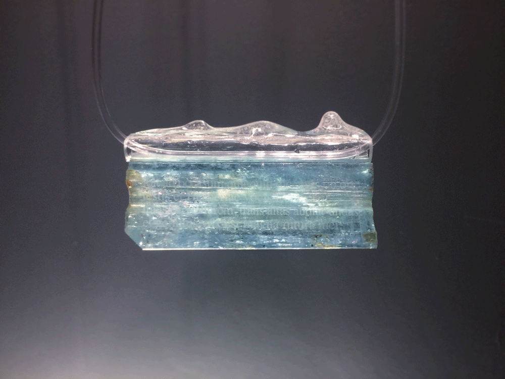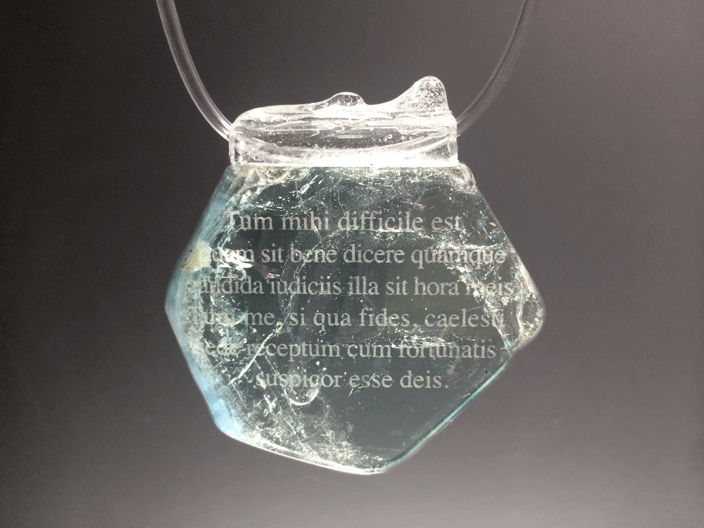 «I often converse with you, often enjoy your converse. Then ’tis hard to say how happy I am, how bright I think that hour. Then, if you can credit it, I con- ceive myself harboured in heaven’s abode, dwelling with the blessed gods. Again when I have returned hither I leave behind heaven and the gods above.» Ovid, «Letters from the Black Sea», book III / 5 (aquamarine, plexiglass, resina) / «То я внимаю тебе, то я с тобою говорю. Как мне бывает тогда хорошо, передать я не в силах; Самыми светлыми мне кажутся эти часы. Веришь ли, мнится тогда, что я очутился на небе, Что получил я удел в сонме блаженных богов.» Овидий, “Письма с Понта”, книга III / 5 (аквамарин, органическое стекло, резина) / “Mi e’difficile il dire quanto allora io goda, e quanto al mio spirito sia lieta quell’ora. Se alquanto mi credi parmi allora di essere accolto in cielo, e conversare cogli Dii beati.” Ovidio “Lettere dal Ponto”, libro III / 5 (aquamarina, plexiglass, resina)