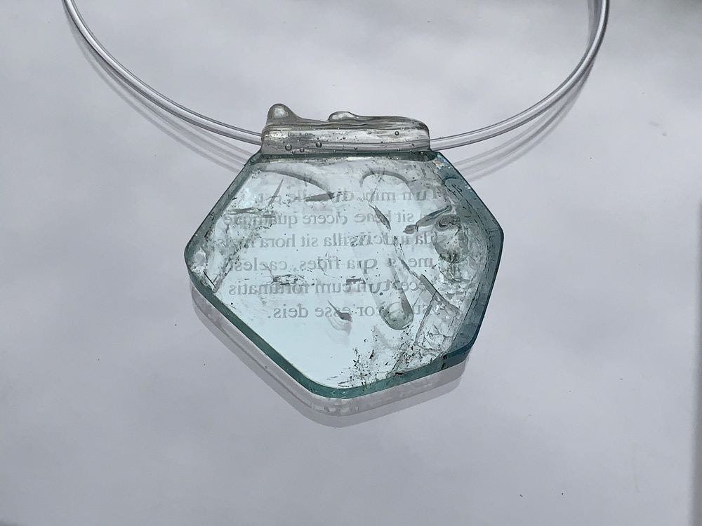 Коллекция подвесок из прозрачных, почти необработанных топазов, аквамаринов и кварцев с лазерными гравировками стихов Овидия былa создана для инсталляции в Национальном Археологическом Музее Адрии (Италия) в 2019 году, где экспонировалась вместе с сосудами из древнеримского стекла 1 в. н. э. Каждому украшению соответствовал свой сосуд, давая отсыл к традиции отправлять в море письма в бутылках будущим поколениям. Прозрачные подвески то ли как окаменевшие воды бушующих стихий, через которые рискуя жизнью добирался поэт до места ссылки, то ли как куски льда, впервые увиденного и поразившего поэта на севере, то ли как застывшие накопленные слезы, превратившиеся в поэмы. Это разговор о превращениях хрупкого и крепкого, текучего и твердого, вечного и частного. Откровения Овидия, снова и снова доходящие до нас через тысячелетия, удивительным образом действительно даруют утешение и надежду. Мы понимаем, что не одиноки в своем одиночестве, боль каждого из нас, по большому счету, не нова, а искусство — то лекарство, тот эликсир, врачующий мировые раны и сохраняющий хрупкие ценности цивилизации.